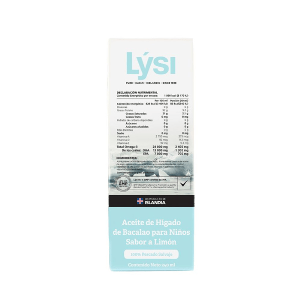 Lysi Aceite de Hígado de Bacalao Junior es un suplemento natural infantil que apoya el crecimiento, desarrollo óseo y sistema inmunológico de los niños. Elaborado con aceite puro de hígado de bacalao y un agradable sabor a limón, está enriquecido con vitaminas A, D y E, esenciales para la vista, los huesos y las defensas. Recomendado por pediatras islandeses desde los 6 meses de edad, es una forma segura y deliciosa de aportar nutrientes esenciales al día a día de los más pequeños.