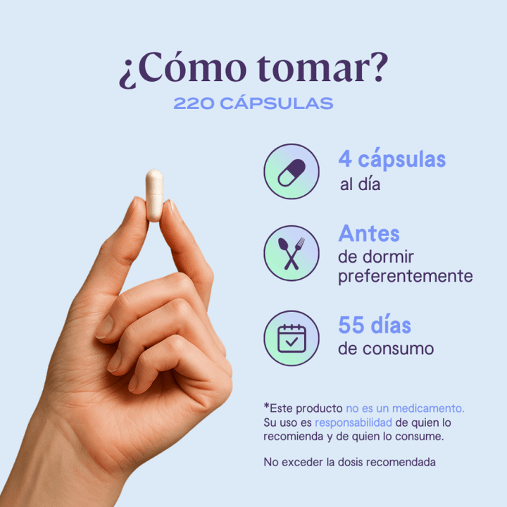 Tomar una cápsula diariamente, preferentemente con las comidas o según las indicaciones de un profesional de la salud.