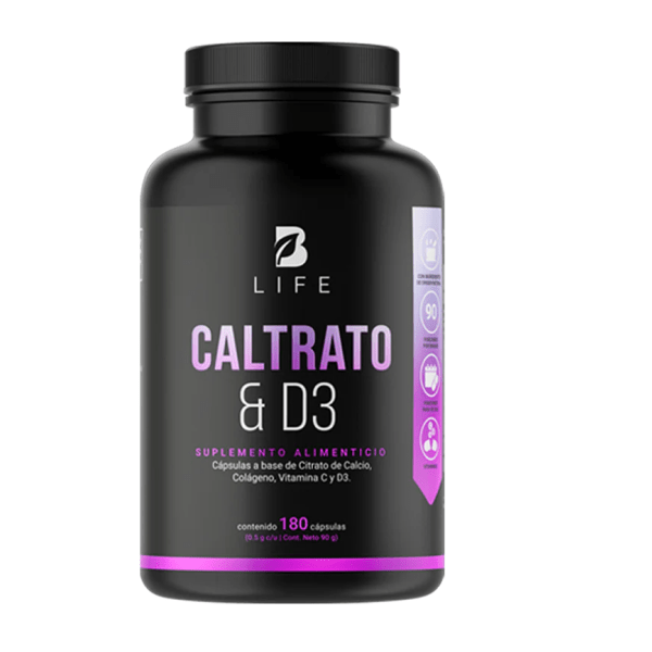 El suplemento Citrato de Calcio y Vitamina D3 de B Life combina calcio biodisponible, vitamina D3, colágeno hidrolizado y vitamina C para apoyar la salud ósea y articular. Su fórmula favorece la absorción de calcio y la regeneración del colágeno, ayudando a mantener huesos fuertes, articulaciones saludables y dientes resistentes. Ideal para hombres y mujeres que buscan prevenir la pérdida ósea y mejorar su bienestar diario.