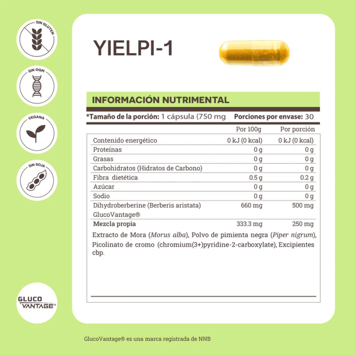 | Dihidroberberina (*Berberis aristata*) (GlucoVantage®) | 500 mg |