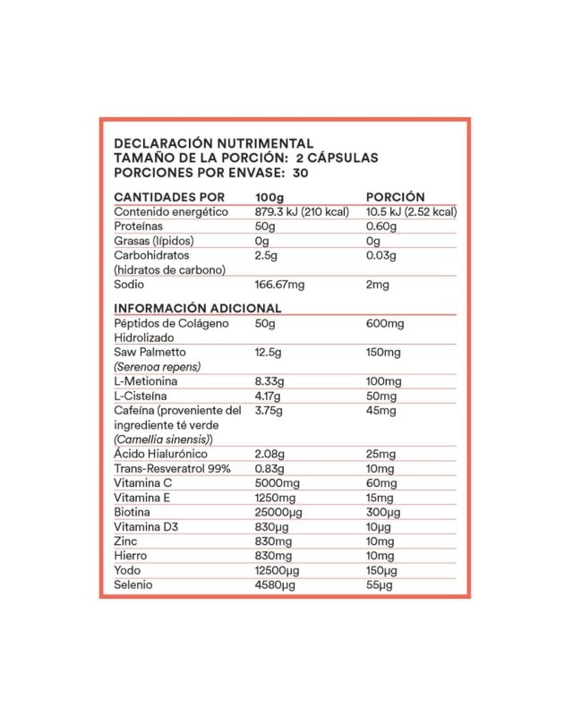 | Péptidos de colágeno hidrolizado | 600 mg |