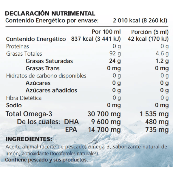 | Aceite de pescado (omega-3) | 5 mL |