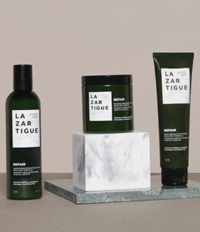 Aplicar sobre el cabello limpio y húmedo, enfocándose en los medios y puntas. Dejar actuar durante 2 a 3 minutos y desenredar suavemente con los dedos o un peine de dientes anchos. Enjuagar con abundante agua tibia. Para mejores resultados, combinar con el Repair Shampoo y la Repair Mascarilla de Lazartigue.