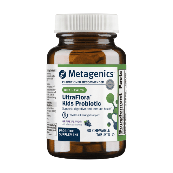 UltraFlora® Probiótico para Niños sabor Uva (60 tabs masticables) – Apoya la salud digestiva e inmunológica – METAGENICS