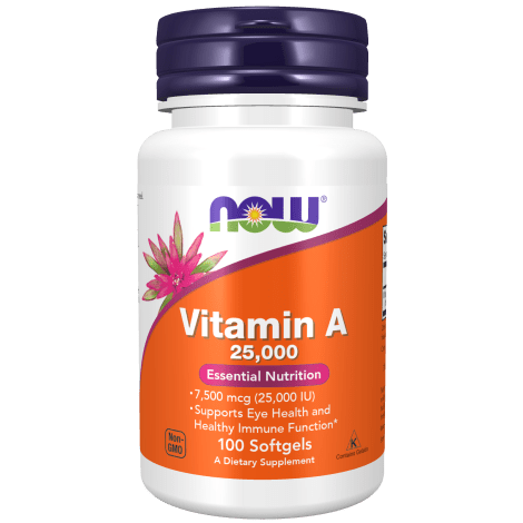 Vitamina A 10,000 UI de NOW Foods en 100 cápsulas blandas es un suplemento clave para apoyar la salud ocular y la función inmunológica. Cada cápsula contiene 3,000 mcg (10,000 UI) de vitamina A, un nutriente esencial para mantener la integridad de los tejidos en ojos, piel y sistemas respiratorio, gastrointestinal y urinario. Ideal para quienes buscan fortalecer su sistema inmunológico y mantener una visión saludable.